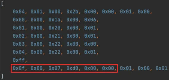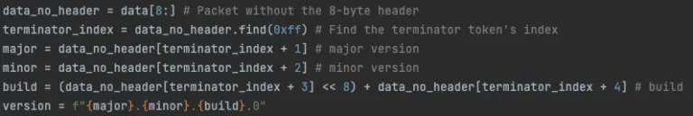 Here’s an example of the data sent back from the server. The six bytes with the version information are highlighted: