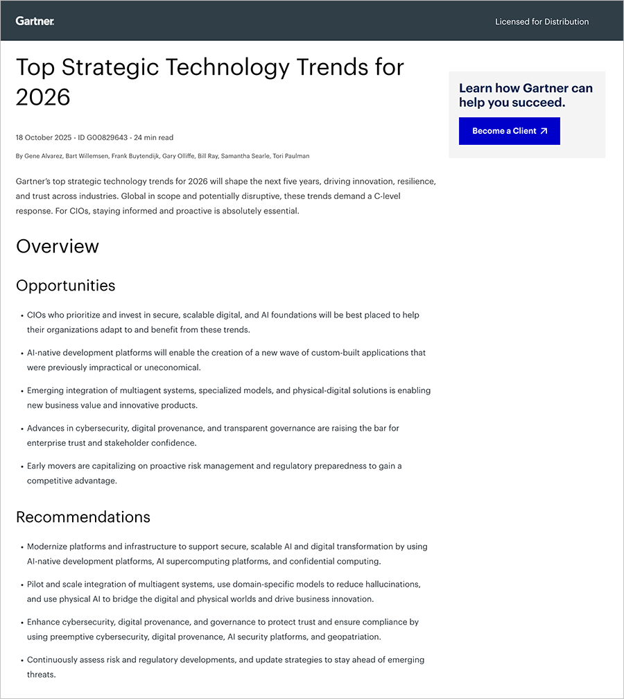 Download the 2025 Gartner® Top Strategic Technology Trends for 2026